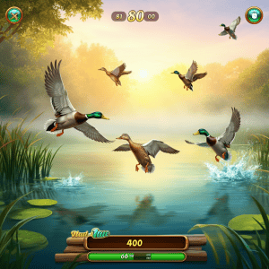 - Grafik: Desain visualnya detail dan penuh warna, dengan animasi yang hidup, seperti kawanan bebek yang terbang atau pemburu yang bersiap di tepi danau.